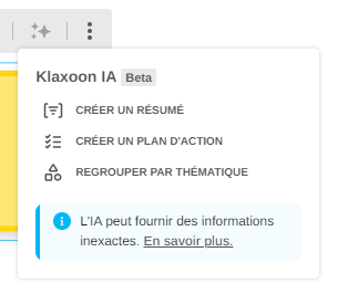 The organization's Klaxoon license administrator must first activate the AI features in the Console so that all users in your organisation can use these new features. Find out more about the conditions for using AI in Klaxoon.