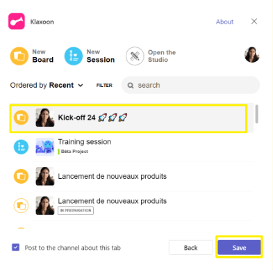 Once you have completed this step, you will access the "Klaxoon activity picker".