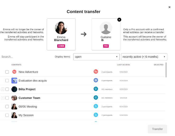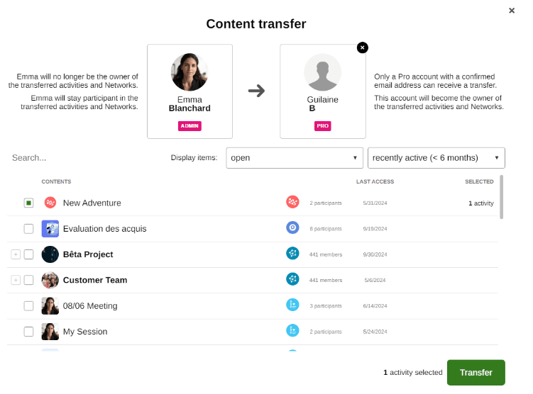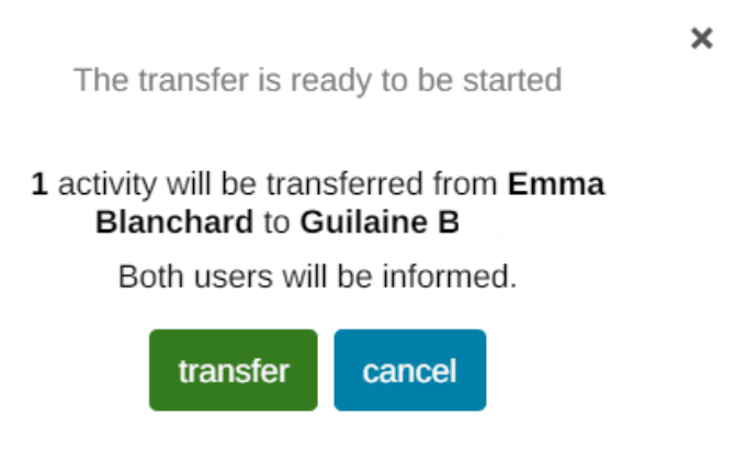 Transfer ownership of an activity from one user to another by the Admin