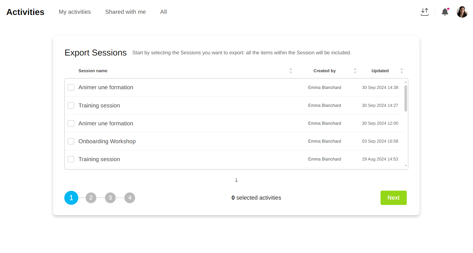 Exporting activities