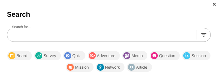 If you have a large number of activities, the search bar is a quick way to find a specific Board or activity.