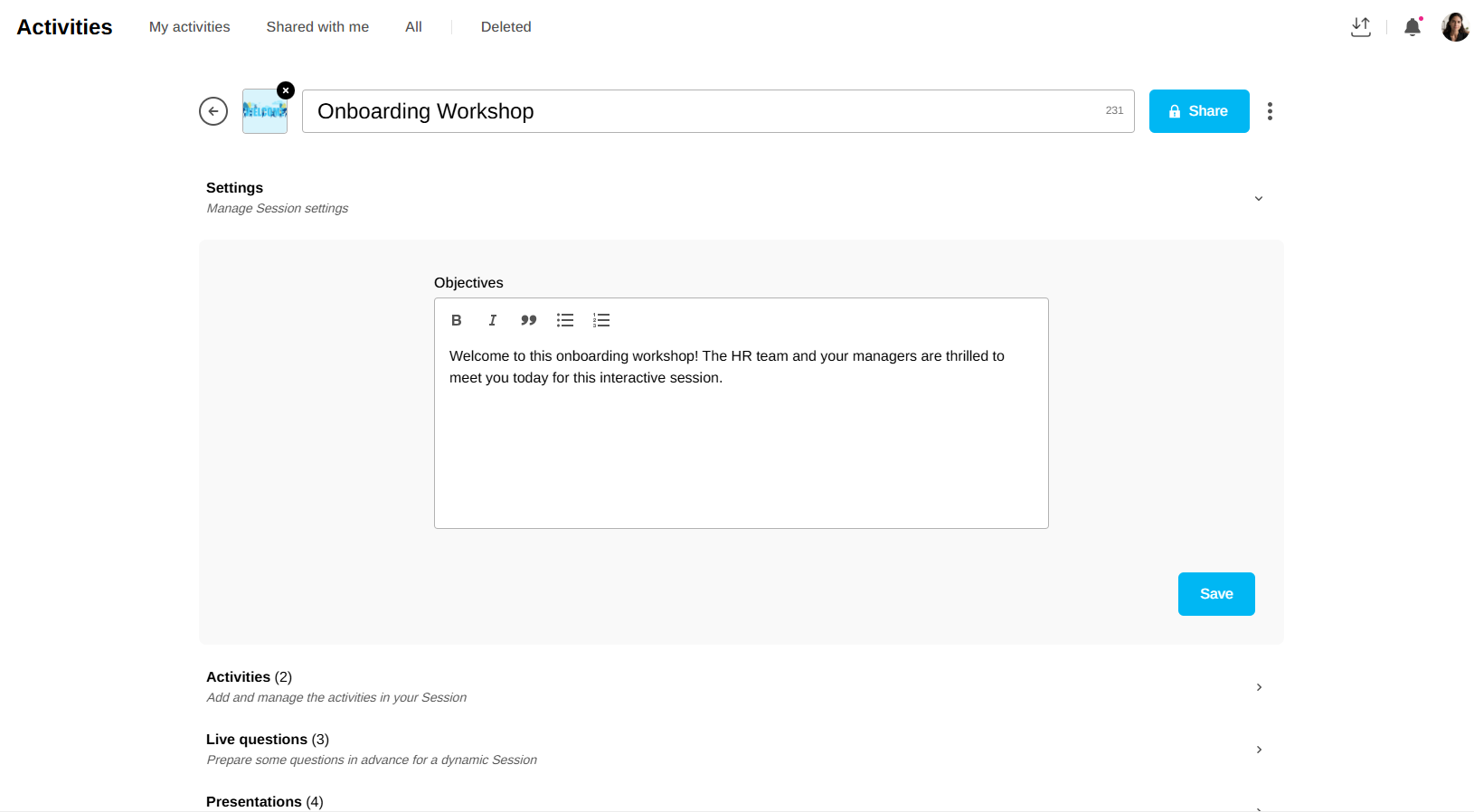 💡 A shared activity cannot be modified WITHOUT being duplicated