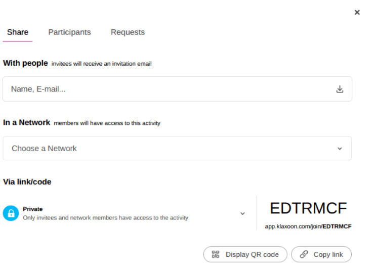 It is also possible to change an activity from Private to Open to users with the link.