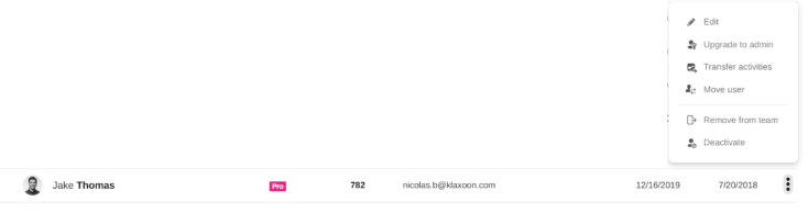 Locate the user you wish to appoint as co-administrator in the list. Click on the menu at the end of the line (represented by 3 small dots) then click on “Change admin”.