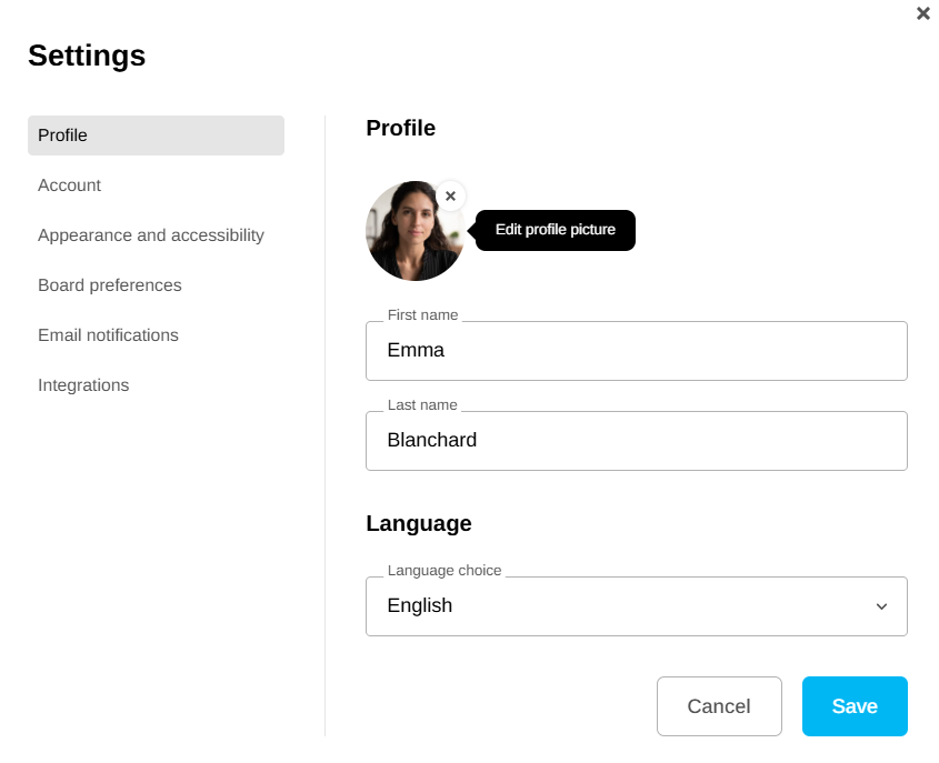 Click on your photo to change or delete it. You can import an image as a JPG, PNG or non-animated GIF.