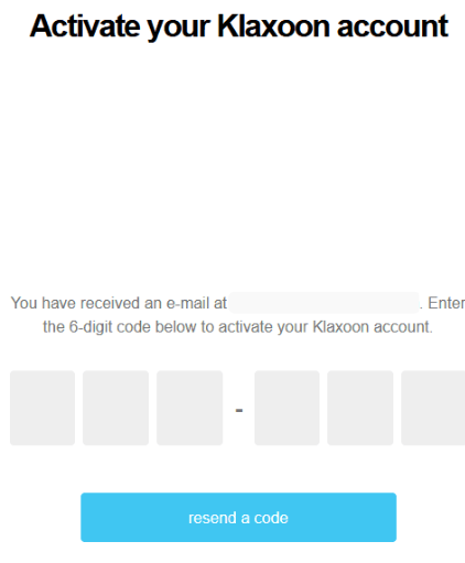 You will receive an e-mail inviting you to enter a 6-digit code to activate your account.