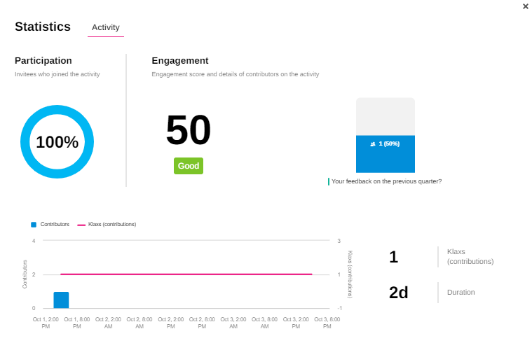 You can use the statistics screen to measure participation in any Klaxoon Activities you have launched.