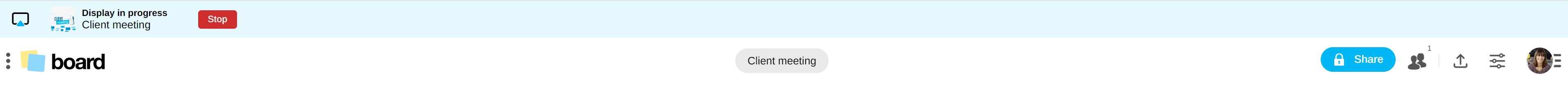 A banner is displayed on your computer or smartphone to remind you that you are presenting on the screen.