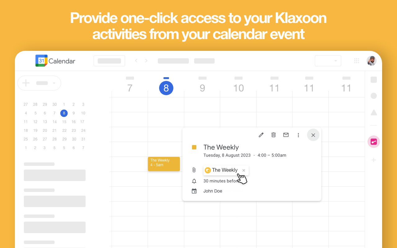Previously, you had to copy the link to your Klaxoon activity and paste it into your Google Calendar event in order to access it.