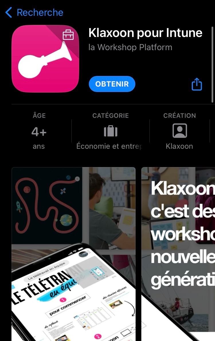 Klaxoon for Intune is an IOS application available in the App Store that can be deployed and managed with Microsoft Intune.