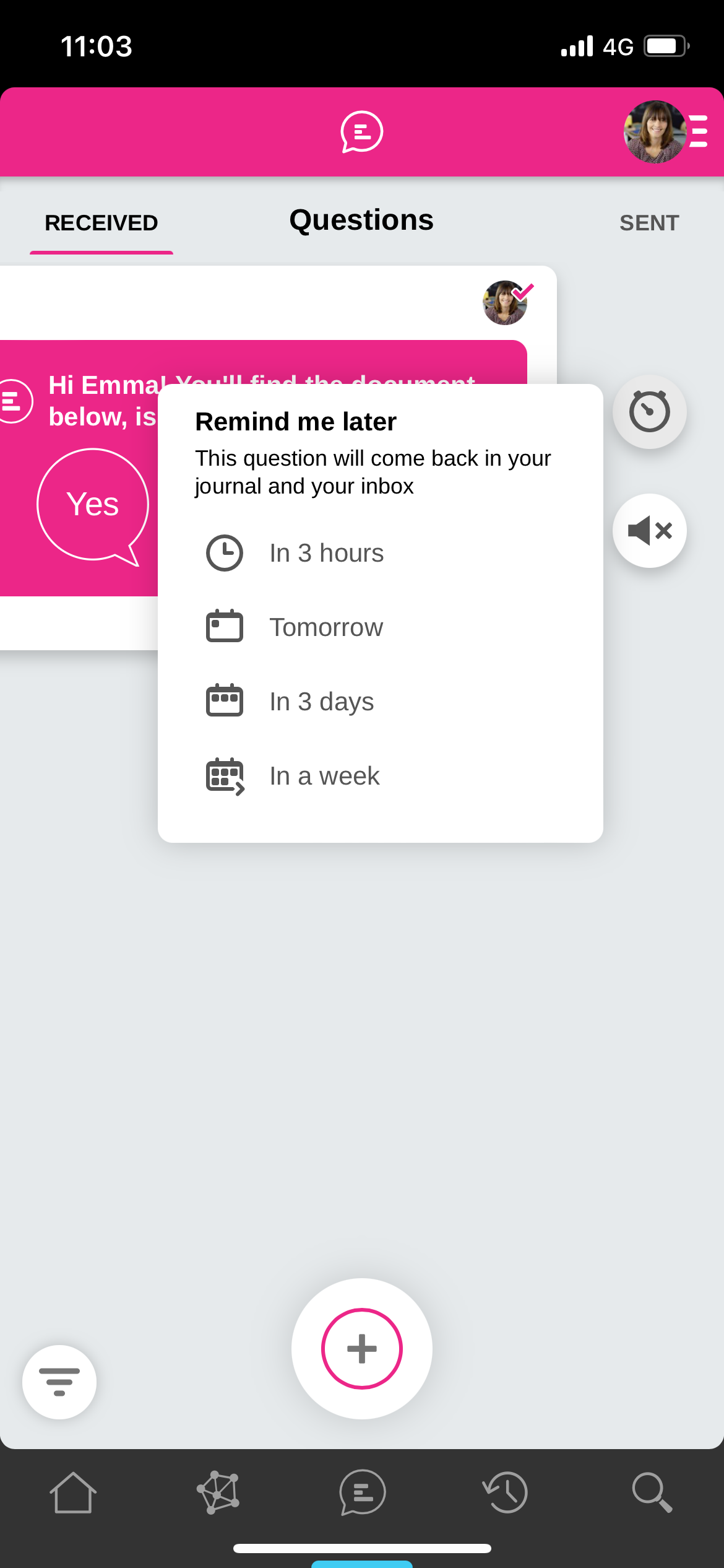 Now it's easier than ever to use Questions! When you receive a Question, you can schedule a reminder to answer it later.