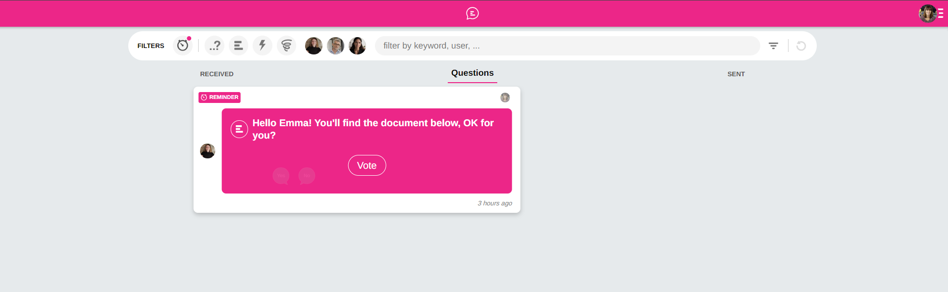 This feature has been available to all Klaxoon users since January 25, 2024. Would you like to know more about Questions? Visit the other pages of our Help Center.