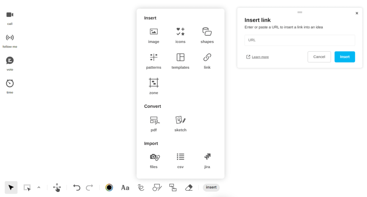 To add a URL to your Board, click on the "Add" button, then in the "Insert" section, choose the "Link picto".