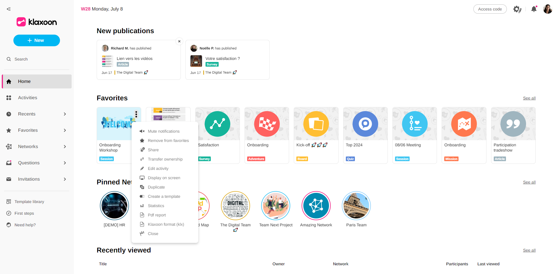 The "Statistics" feature has been added to all the activities you host or co-host! This new dashboard gathers and explains in detail all the engagement-related data within your activity. So you can identify precisely what does or doesn't generate engagement in each of your Boards, Memos, Quizzes, Surveys,...etc. This allows you to effortlessly identify areas for improvement, enhancing your participants' experience and achieving your objectives more quickly.
