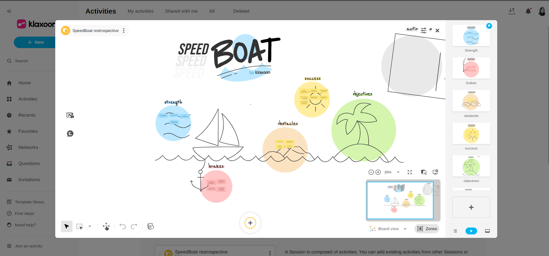 Createa new Board in a Session: a window opens on top of your Session to allow you to add ideas, texts, shapes... So you can set it up and customize it instantly.