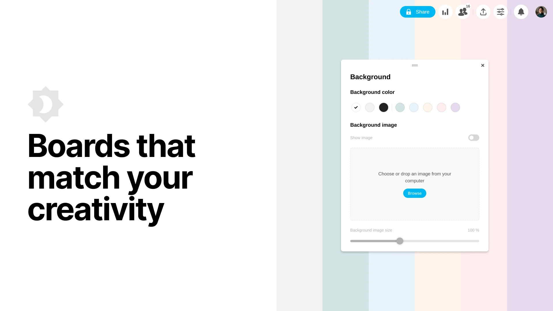 Until now, customizing the background of your Board was limited to two options: white or black. Today, it's time for much more creativity and freedom thanks to the arrival of six new background colors: