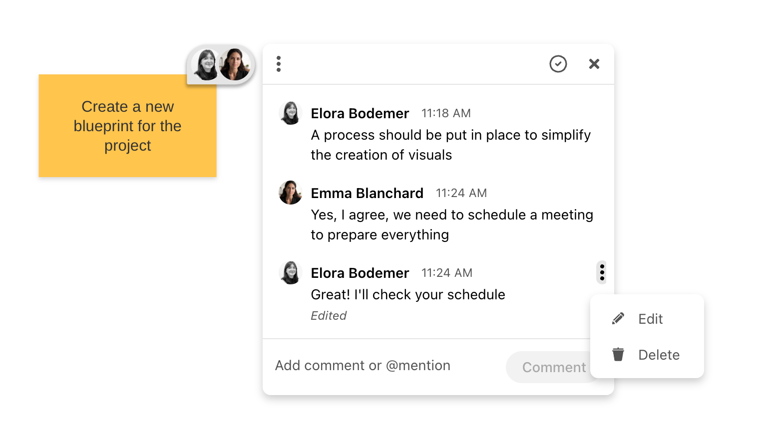 All comments on a Board are now centralized in a side panel. This allows you to quickly browse through all active threads, so you can keep track of the discussion at a glance, without having to scroll through the Board object by object.