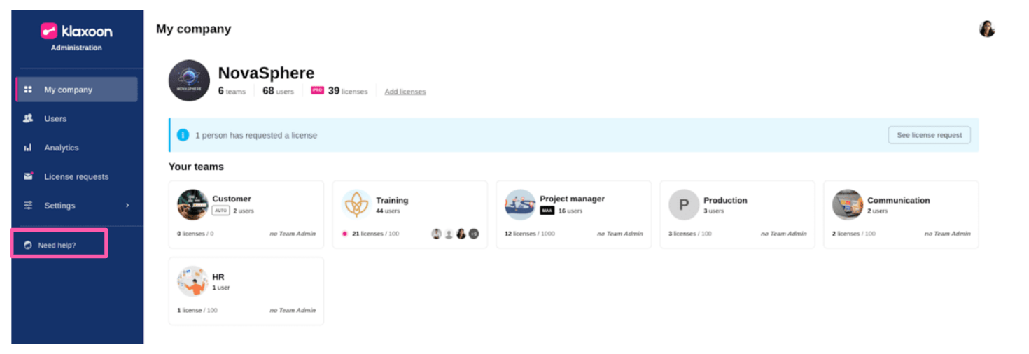 In addition, a dedicated button provides direct access to the Help Center resources, where you will find quick and comprehensive answers to all your administration-related questions.