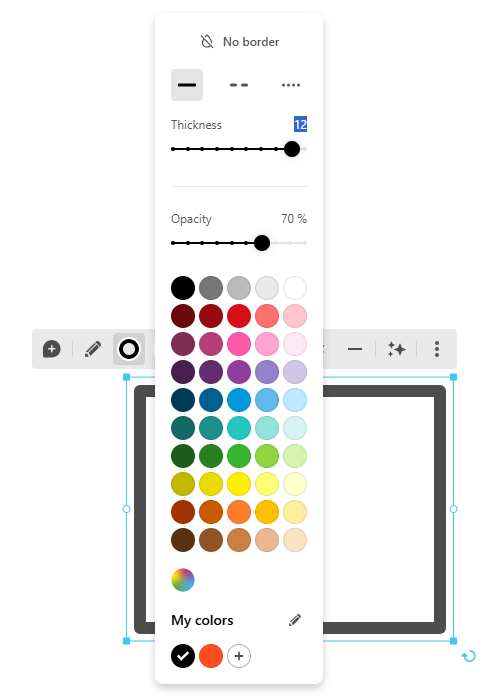 Use the slider or select a preset value (thin, medium, thick) to increase or decrease the stroke thickness.