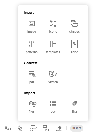From the toolbar of your Board, click on "Insert", click on the "Zone" button