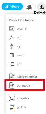 Display the area of the Board you wish to integrate into the report, then access the export menu (top right).
