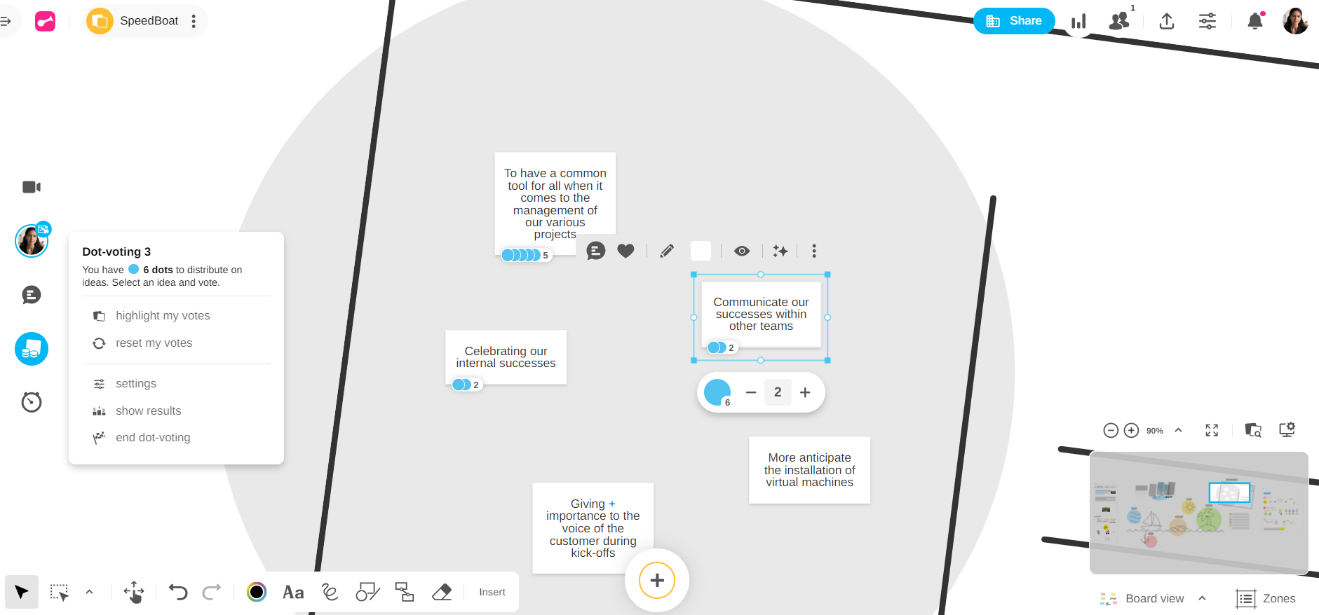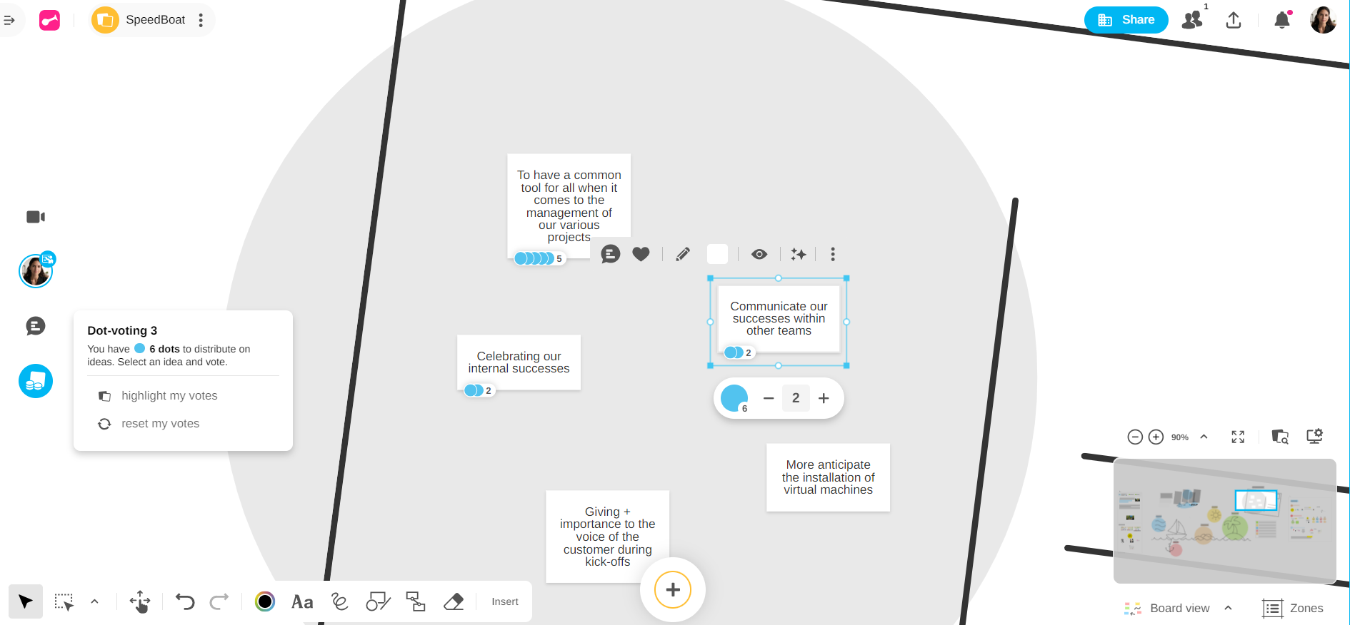 Go to your Klaxoon Board and click on the “Solicit your team” icon, then select Dot Voting.
