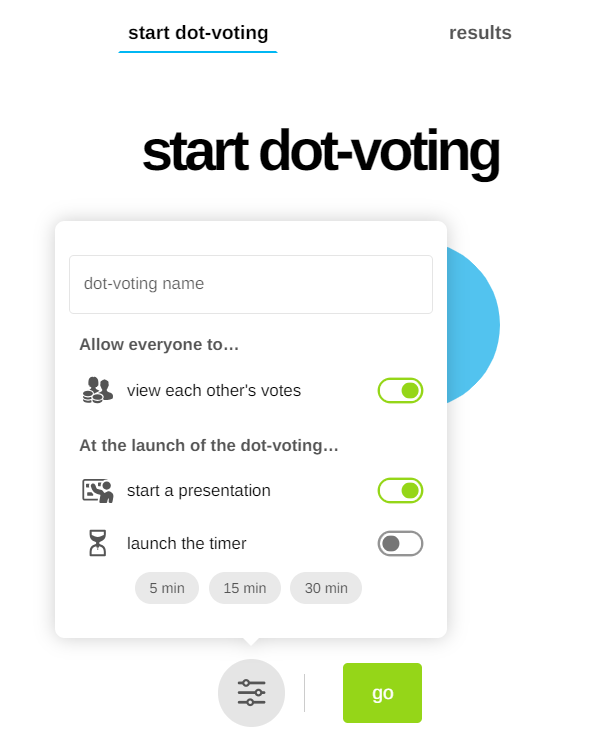 You can view the results of past sessions at any time by accessing the “Ask your team” icon, then selecting Dot Voting in the Results tab.ats.