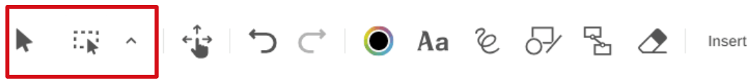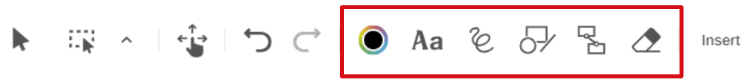 This section allows you to choose a color, write a text, select the brush, add shapes, connect objects or erase.