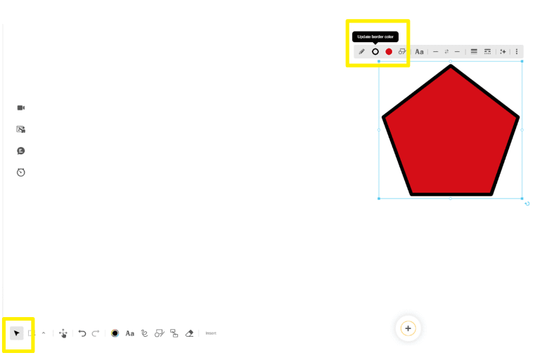 By clicking on the pointer (at the bottom right of your toolbar), click on your shape, then you can change the color of its outline as well as its color.