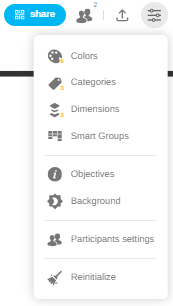 In addition to categories, dimensions are used as a means of further defining ideas. Dimensions are displayed as free fields below each idea. Participants can use them to enter any additional details as required (e.g.: their first name, a date, a keyword, etc.). The facilitator can then use these criteria to sort ideas more precisely.