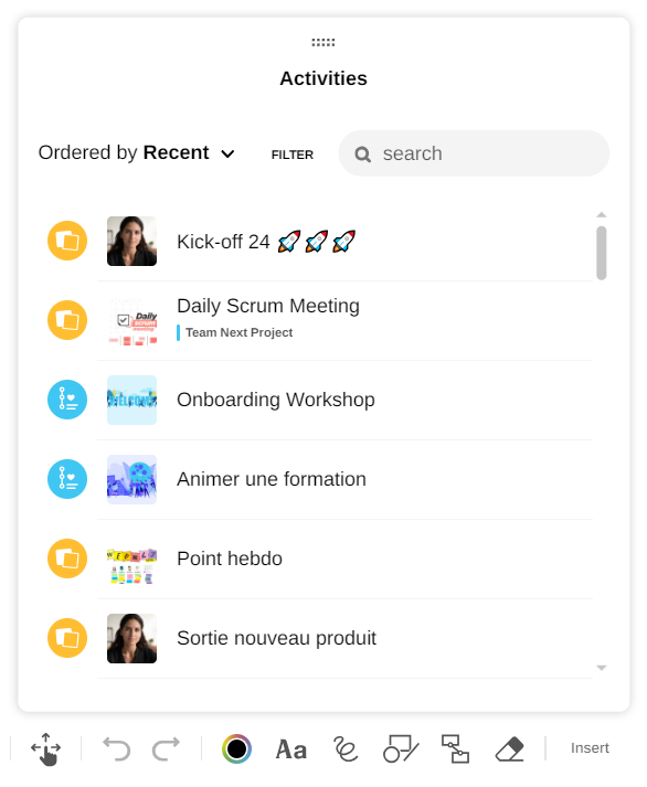 A new window opens, in which you can select the activity you wish to add using the search or various filters: