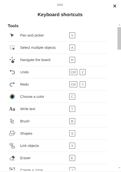 In a Board, you can use keyboard shortcuts to make using the Board's functions more fluid.
