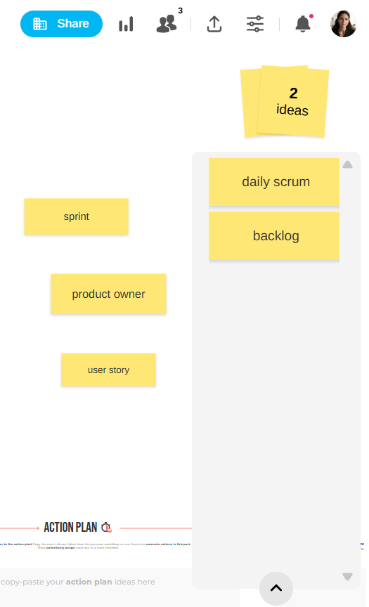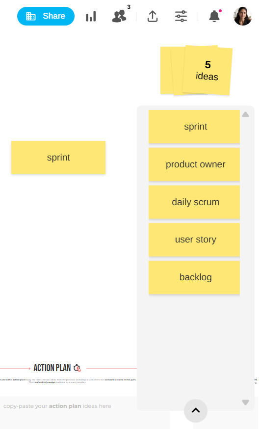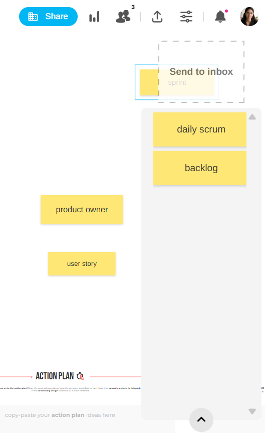 On Board in controlled mode (learn more about controlled mode), the ideas sent by participants arrive in the inbox, located at the top right of the interface. With filters and a list view, you can easily sort, select, and move ideas around your workspace.
