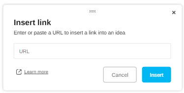 Type or paste the URL link to be inserted in an idea and click on "Insert".
