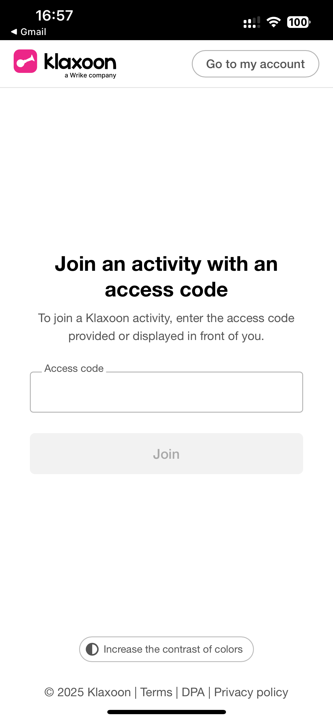 The facilitator has shared an access code with you, open the Klaxoon app or go to go.klaxoon.com via your mobile browser.