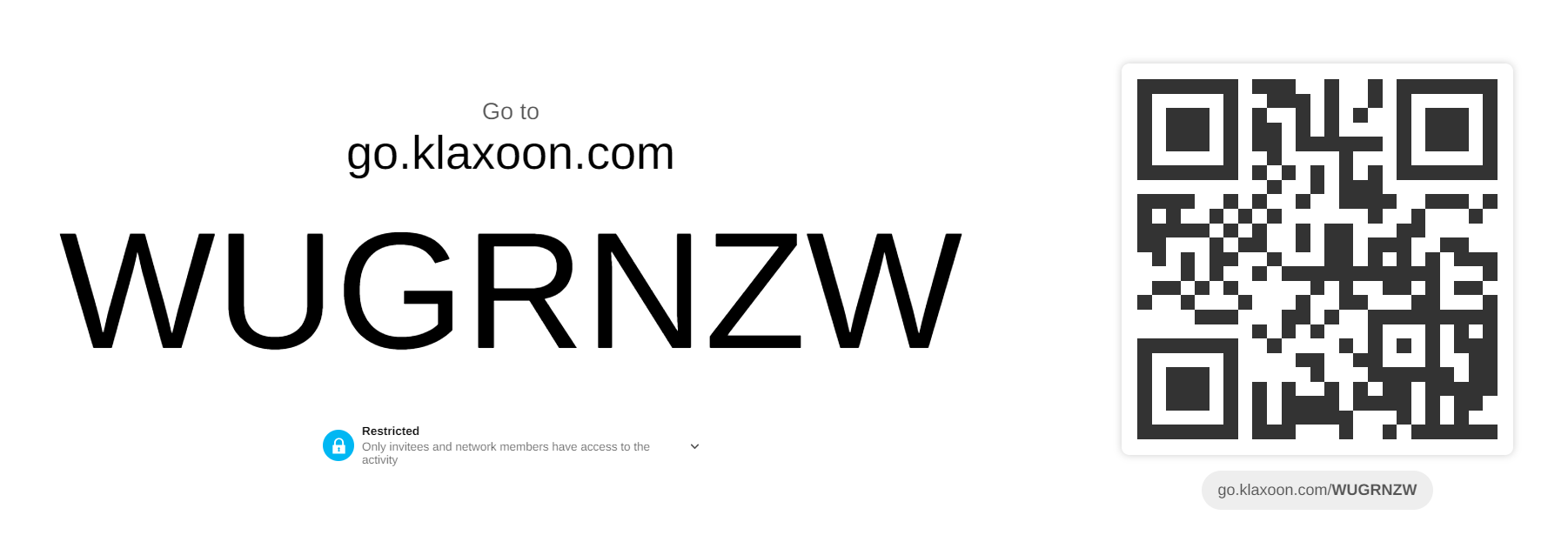 As an animator, when you share an activity, the link will look like this: https://go.klaxoon.com/join/xxxx