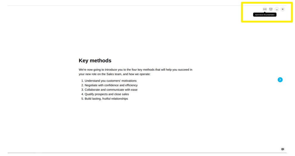 Using the "synchronization feature", it is possible to share your presentation live on all participants' devices.