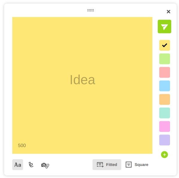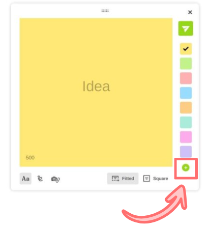 Before sending it to the Board, look at your idea on the screen and the different options available on the right. Notice the green "+" button? Click it. The color palette appears.