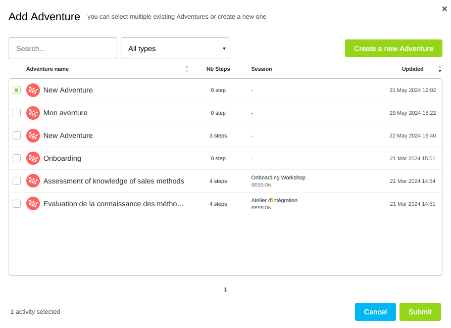 Want to energize your Sessions and engage your participants in a playful way? Adding an Adventure is the ideal solution! Follow these simple steps to add an Adventure to your Session.