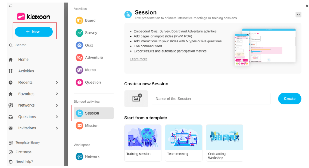 Want to energize your online meetings and workshops? Integrating Boards into your Klaxoon Sessions is a great way to encourage active participation and co-creation. Follow these steps to build a powerful Session with Boards.