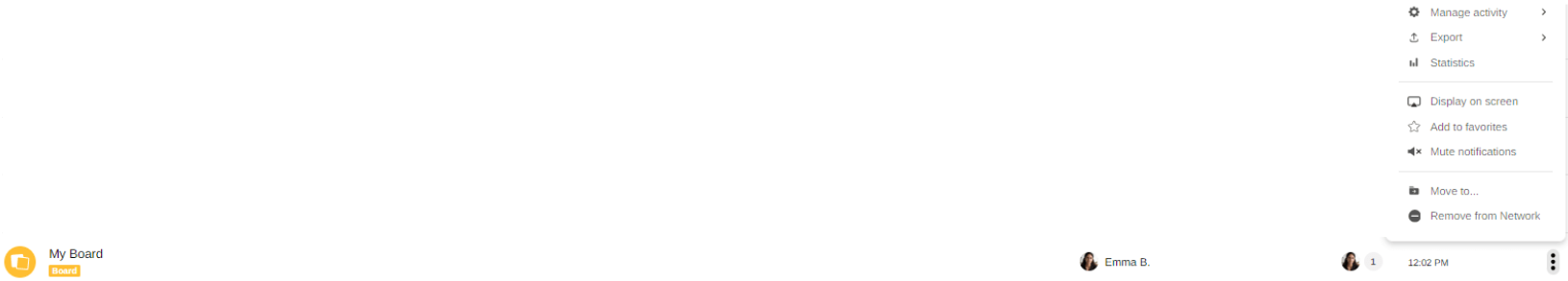 To access the activity options menu, click on the vertical "3 dots" at the right end of the line.