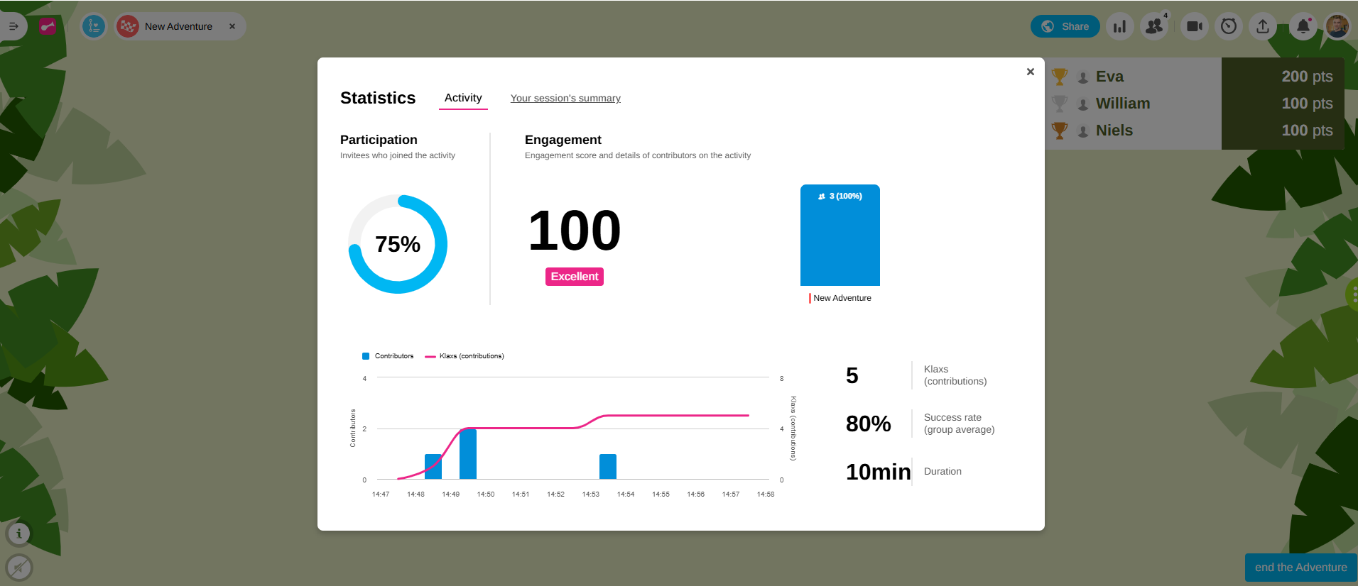 As an facilitator, you want to track the progress of participants in an Adventure you've created. To do so, you must first integrate your Adventure into a Session.