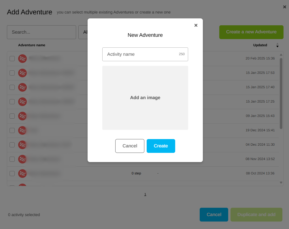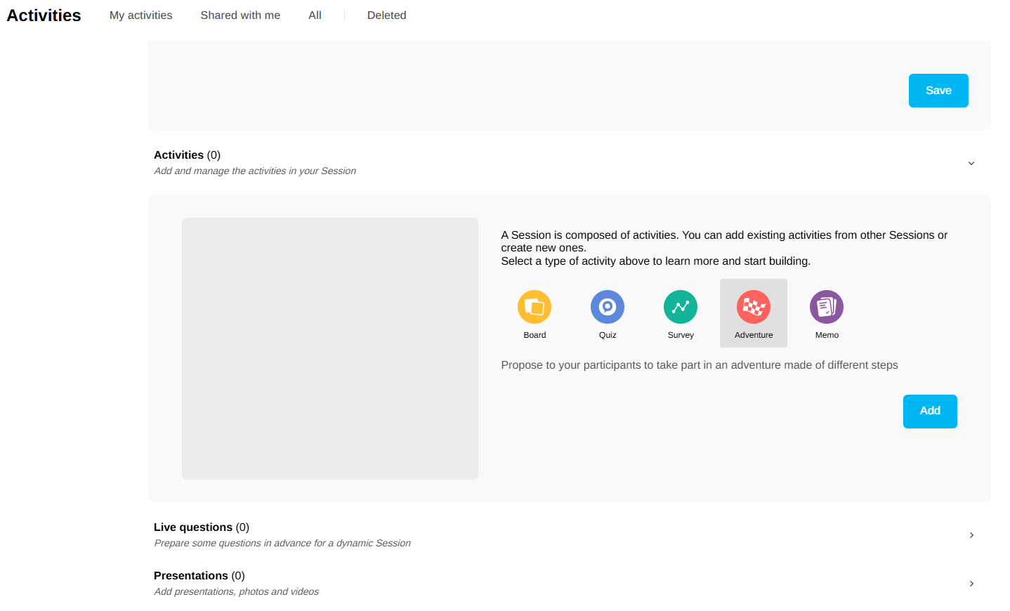 You can either create an Adventure from your Session configuration or integrate an Adventure that has already been created.