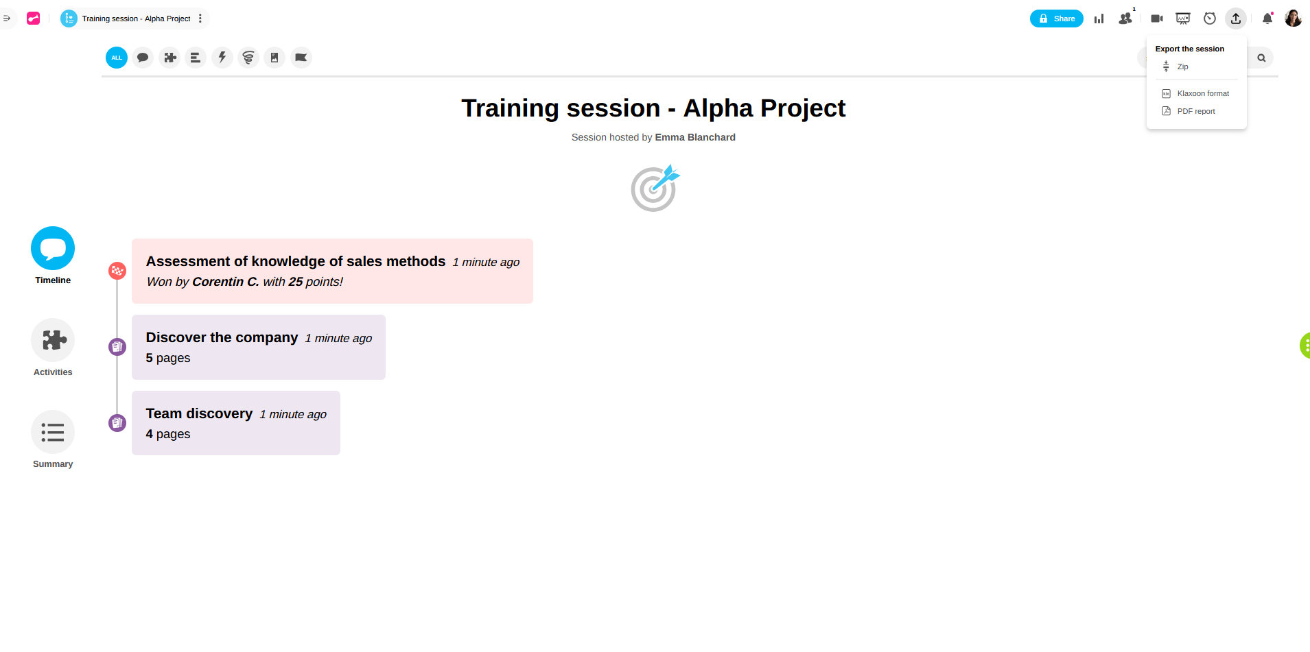 2 - Klaxoon format : if you want to share the struture of the Session to one of your colleague. Have a look to this article : Importing activities to discover how to use it.