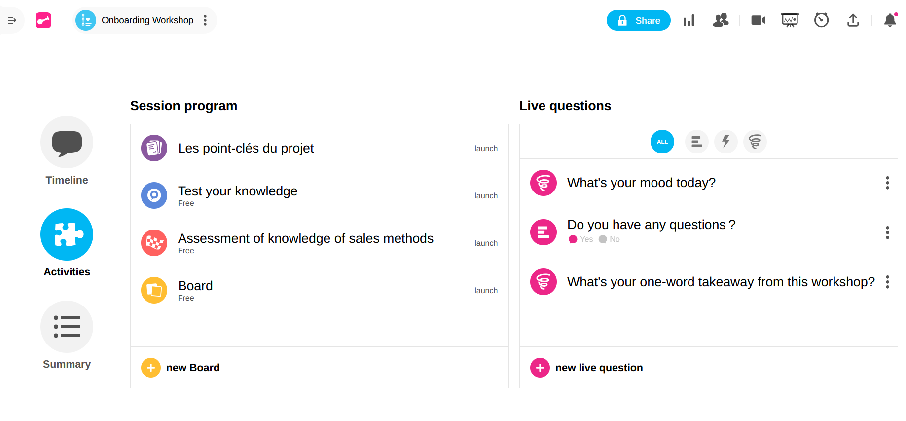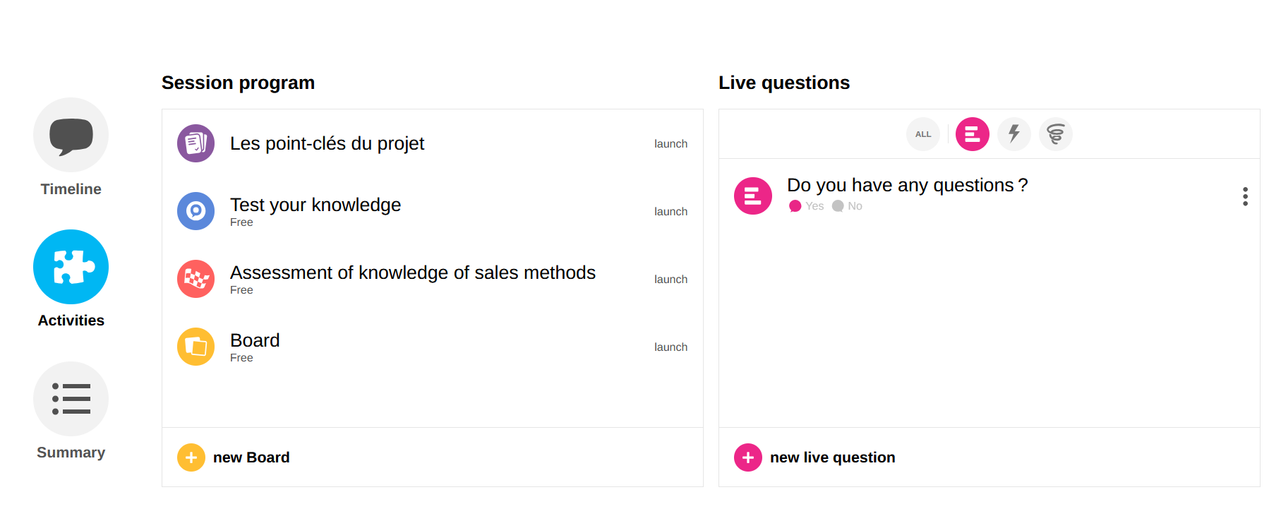 Live Questions provide a means of asking participants questions in a Session.