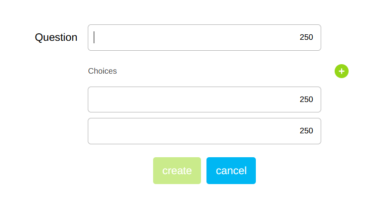 Enter the question title and, depending on the Live Question type, the possible answers, and then click on "Create".