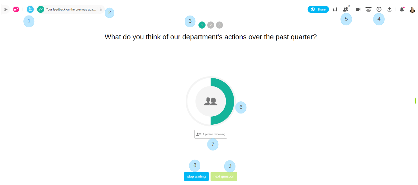 Click to make the next question available to the participants (the button is available once every participant has answered).