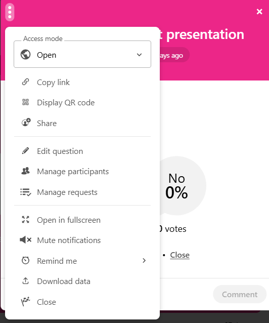 It is also possible to share the access code of the question once it has been launched.