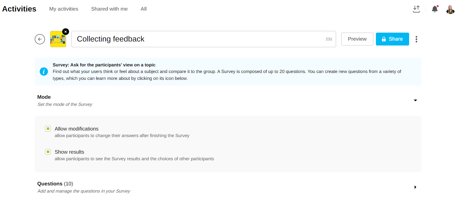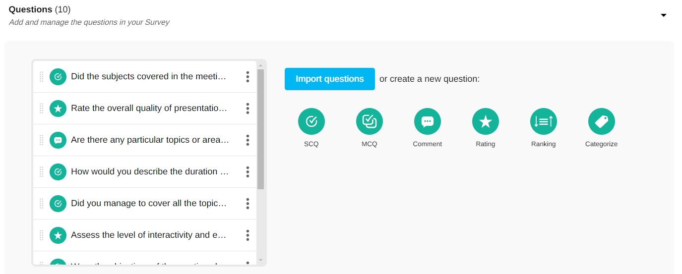 The Survey launched in stand-alone mode (i.e. outside a Session) is preferably used asynchronously.
