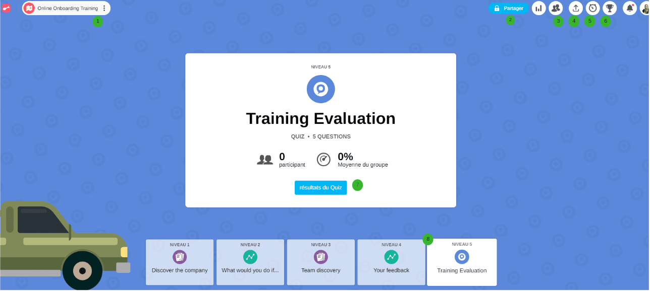 Once the Mission is launched, the facilitator accesses the interface shown below to view participants' results: